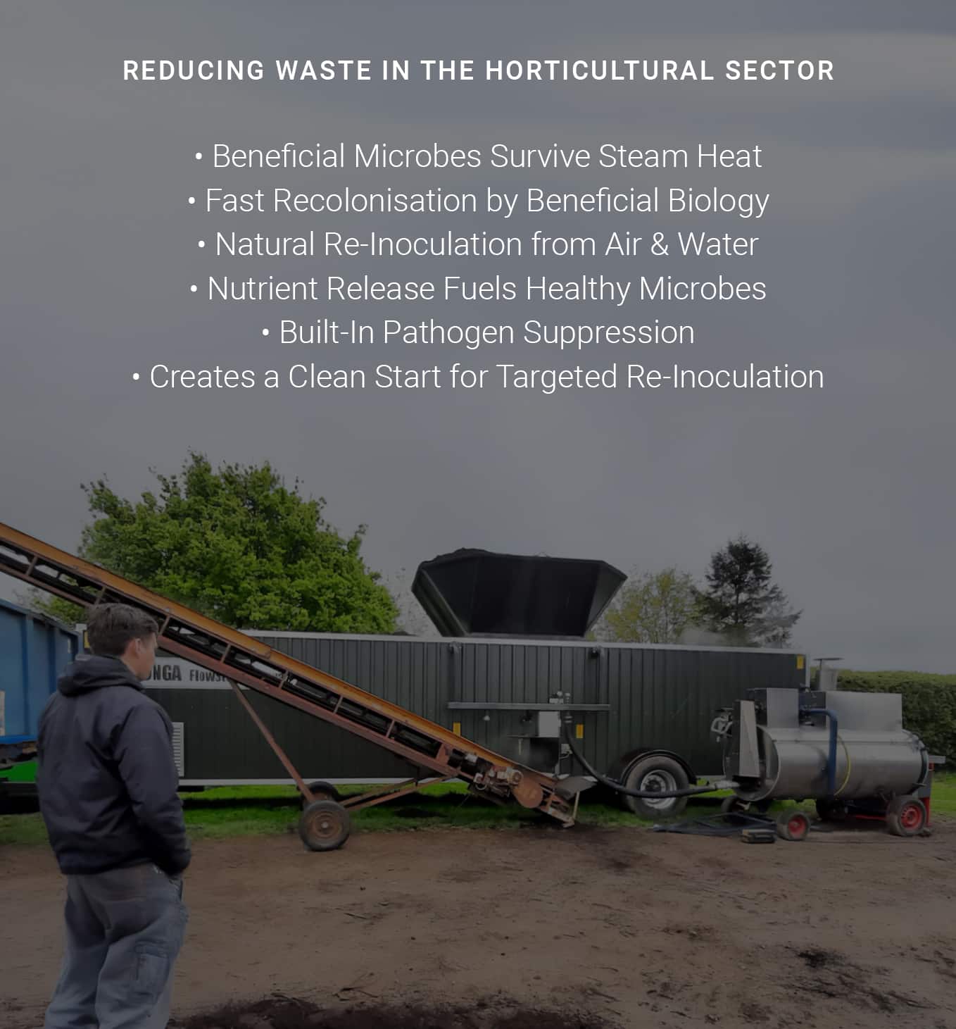 2. Reduce Waste Within the Horticulture Sector; FlowSteama enables closed loop resource recovery by repurposing sustainable, spent growing (coir, peat etc.) medium.