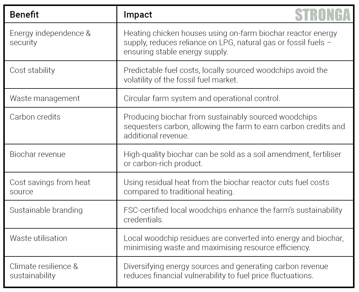 Stronga are looking for similar, forward-thinking, entrepreneurs to continue our positive collaboration and explore new opportunities for efficiency, sustainability, and value creation. By partnering with individuals that share our vision, we can develop solutions that not only enhance performance but also address evolving environmental issues. All Stronga equipment is configured correctly for the customer’s requirements, in this particular case the dryer was successfully scaled to utilise the residual heat not required for poultry house heating.
